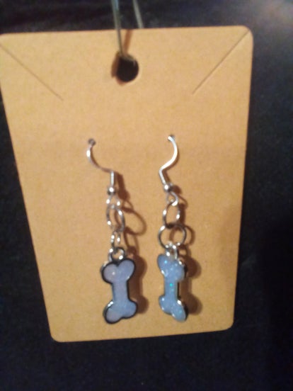 Unpaid dog bone earrings. Choose your color. Currently I have a dark pink and a light blue. Will work for all dog lovers!